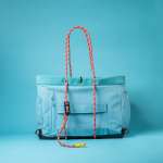 バッグの持ち手は高強度ポリエステル、強化コアロープ芯13本の8mm径クライミングロープが用いられており、強度と丈夫さに関してはいうまでもなく抜群。バックの外側を回して全体を支えるように配置されており、生地と構造も合わさって耐荷重100kgという強靭さを実現しています。また、ロープ自体に高い撥水性が備わり、濡れた環境下でも水濡れが起こりません。