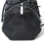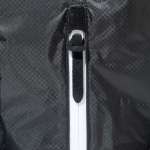メイン収納部の開口部は、登山用バックパックのようなドローコードを使用した巾着型ですが、それに加えて正面センターに設けたファスナーからメイン収納部へ直接アクセスできるつくりなので、ストレスなくサッと荷物を出し入れできます。また、センターファスナーは止水仕様で雨の侵入を防ぎます。