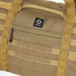 前後のポケット部分は裏側が貫通していて、キャリーバッグのハンドルに通せる仕様に。また、デザインのポイントにもなっているモールシステムには別売りのポーチなどのアクセサリーを取り付ければ、自分好みにカスタマイズできます。