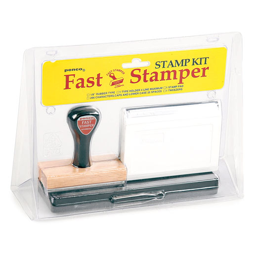 「ファストスタンパー」は、スタンプホルダーにゴムフォント、ピンセット、インクパッドとすべて揃ったセット。スタンプホルダーにピンセットでひとつひとつアルファベットや数字や記号などのゴムフォントを入れ込む作業は、どこかワクワクします。