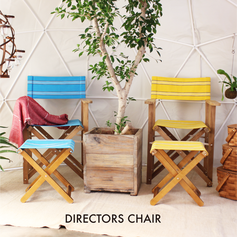 ディレクターズチェアは、安定感ある座り心地と、真夏の屋外に映えるカラーリングが魅力。W57.5×H87×D50cmとサイズもゆったり、座面と背もたれに使われた新色のストライプファブリックの豊富なカラーバリエーションに目移りしてしまいそう。価格は各3万8880円、共布を使ったスツールも発売中でこちらは各1万2960円。