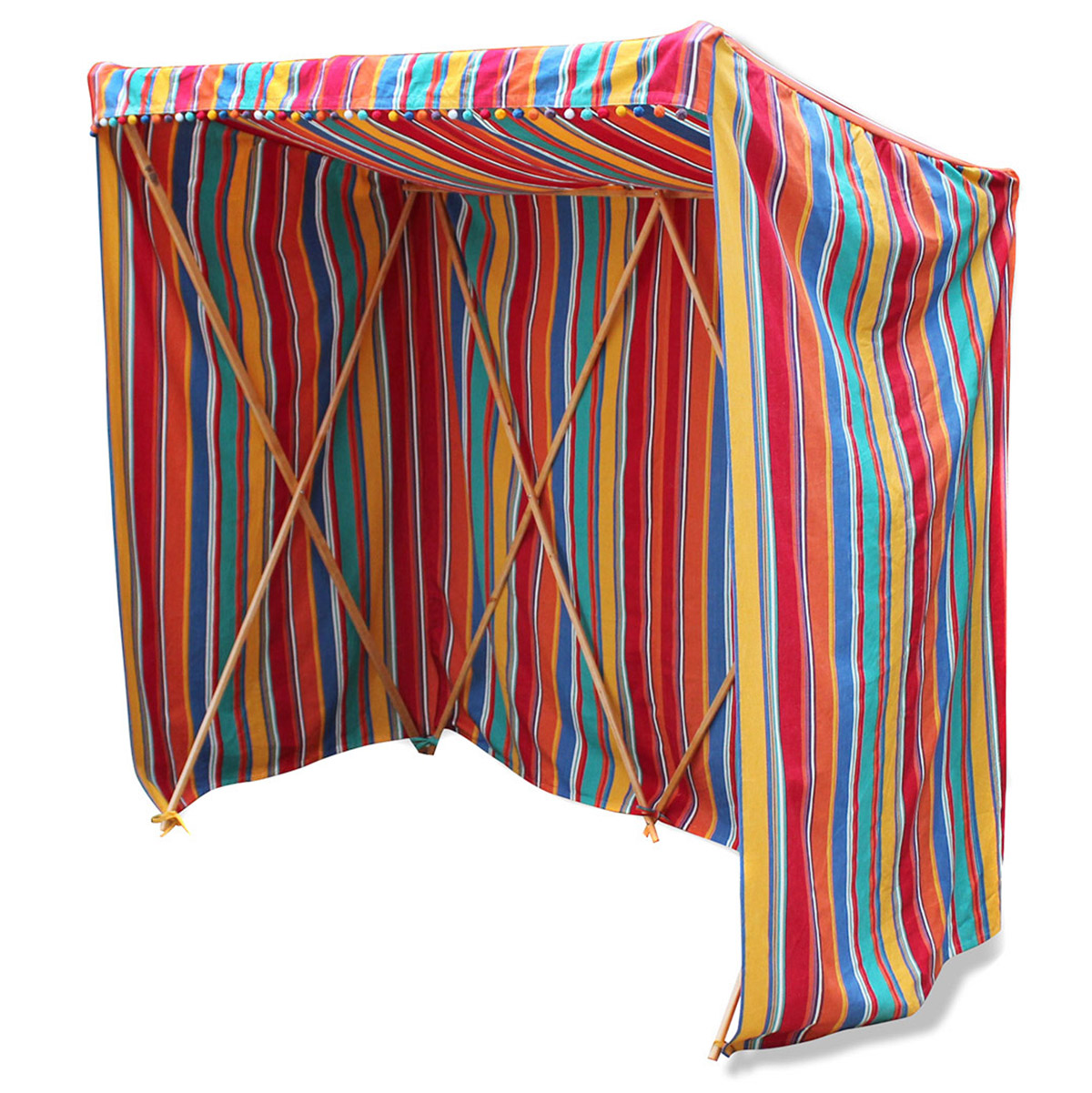 同じくカラフルな色使いが開放的な季節にぴったりのシェルターは、ちょっと優雅な気分を味わえそうなサンシェード。日本ではあまり見かけないフルオープンタイプで、テラスやビーチに広げれば目立つことうけ合い! ポールは折りたたみ可能となっており、見た目よりも簡単に収納・持ち運びできる。6万6960円。