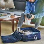 フタはジッパーでガバッと大きく開き、着替えやタオル、ブランケットなどの荷物をたっぷり収納できます。底面ボードが付属するので、複数のボックスをスタッキングしやすく、アウトドアや旅行時だけでなく、家で収納ケースとしても活用できそう。裏面にはPVCコーティングで防水加工を施しており、水濡れに強いのも特徴です。
