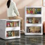工具不要で、組み立てはわずか15秒。使用時はW55×D30.5×H30.4㎝、折りたためば、高さは1/3の10㎝にまでサイズダウンできるので、ベッド下などの隙間スペースにも収納可能。車の中に積み込んでおけば、キャンプやバーベキューなどのアウトドアで荷物の持ち運びにも活躍します。