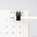また、ホルダー部分は伸縮するので、細めのペンから、マーカーのような軸が太めの筆記用具まで取り付けられます。カラバリは黒、ゴールド、シルバーの3色展開。シンプルなデザインが多いカレンダーの挿し色使いにもうってつけです。