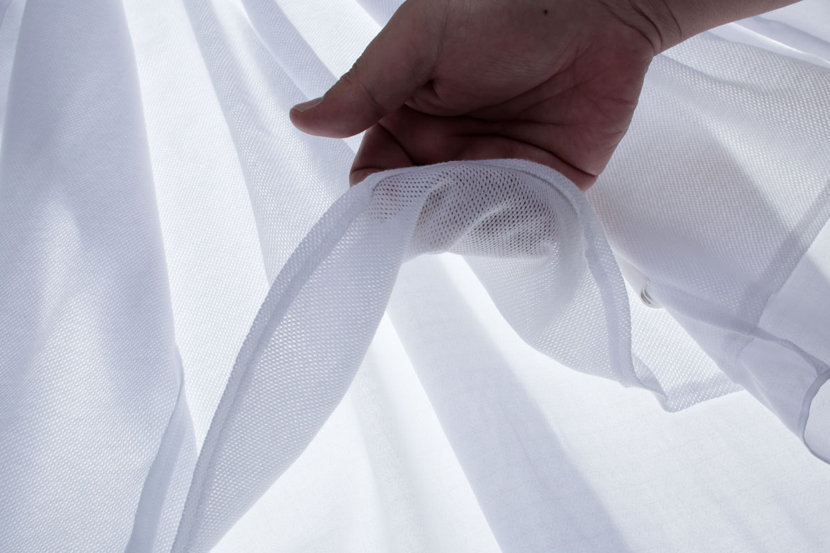 シャツの生地もアイロン不要の夏向け生地を採用。メッシュインナーを通ってきた汗を瞬時に吸収し、放出してくれる。また、最も通気性が悪くなるワキ部分には、汗ジミ防止のワキパッドも付いている。ワキ汗ジワリといった状態も回避できるのだ。