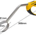 外寸は全長368×高さ145mm、ブレード部は幅81×長さ96mm。プラスチック製の持ち手にはグリップ力を上げるシリコンラバーが備わり、狭い場所でも安定した刈り取り作業が行えます。本体の金属部分は強化ステンレスを採用。約235gと軽量であるだけでなく、耐腐食性にも優れているため、長く使い続けられます。