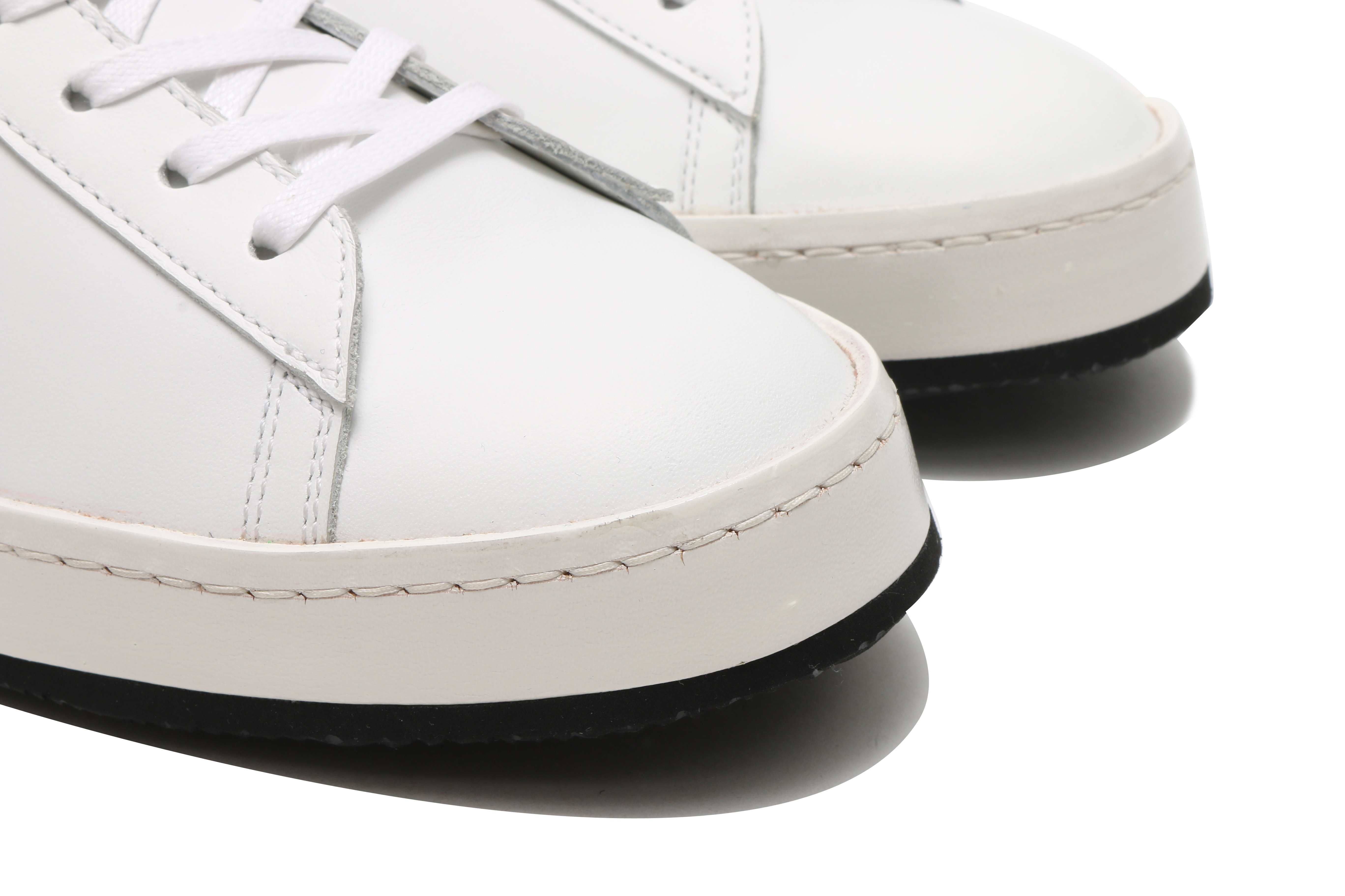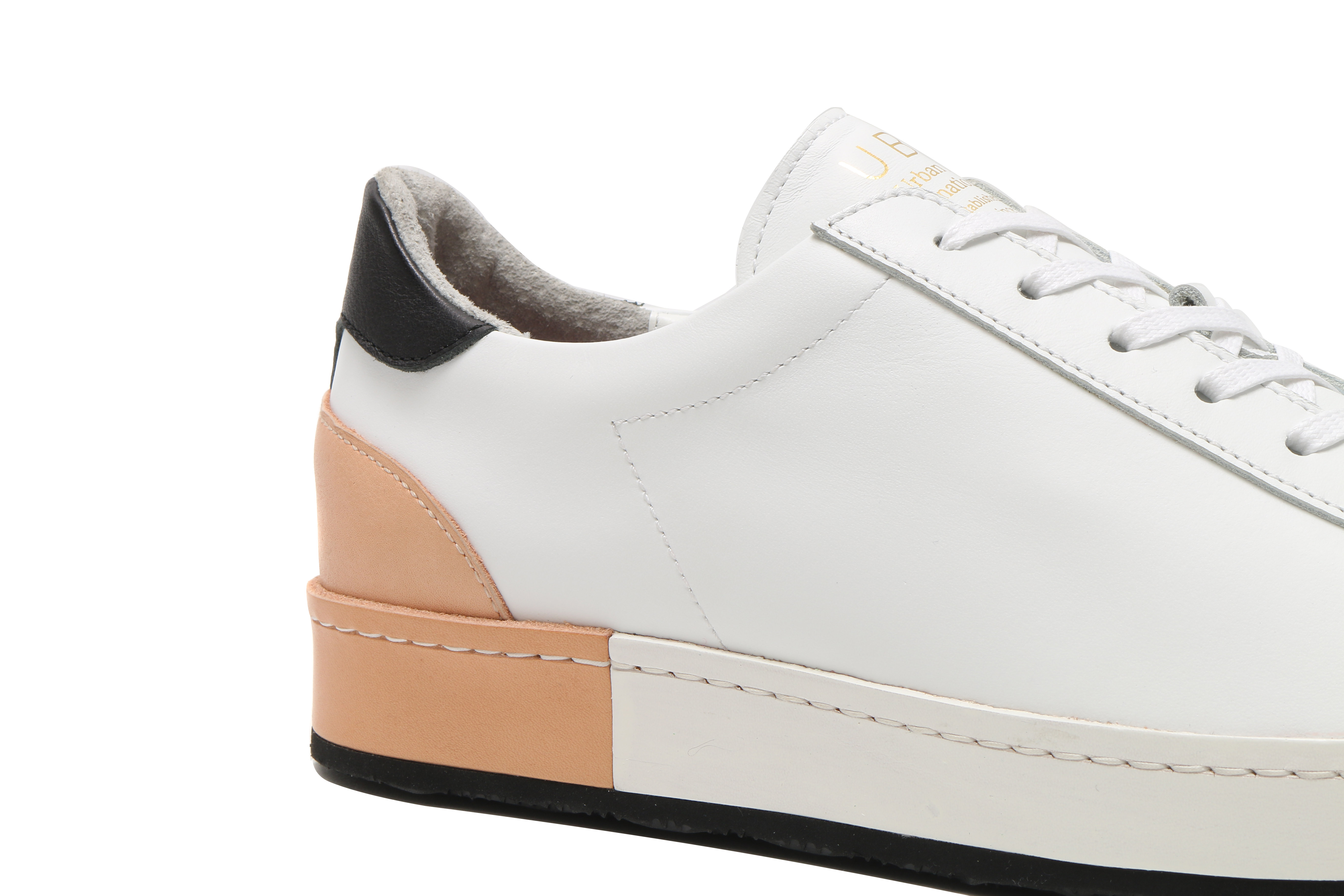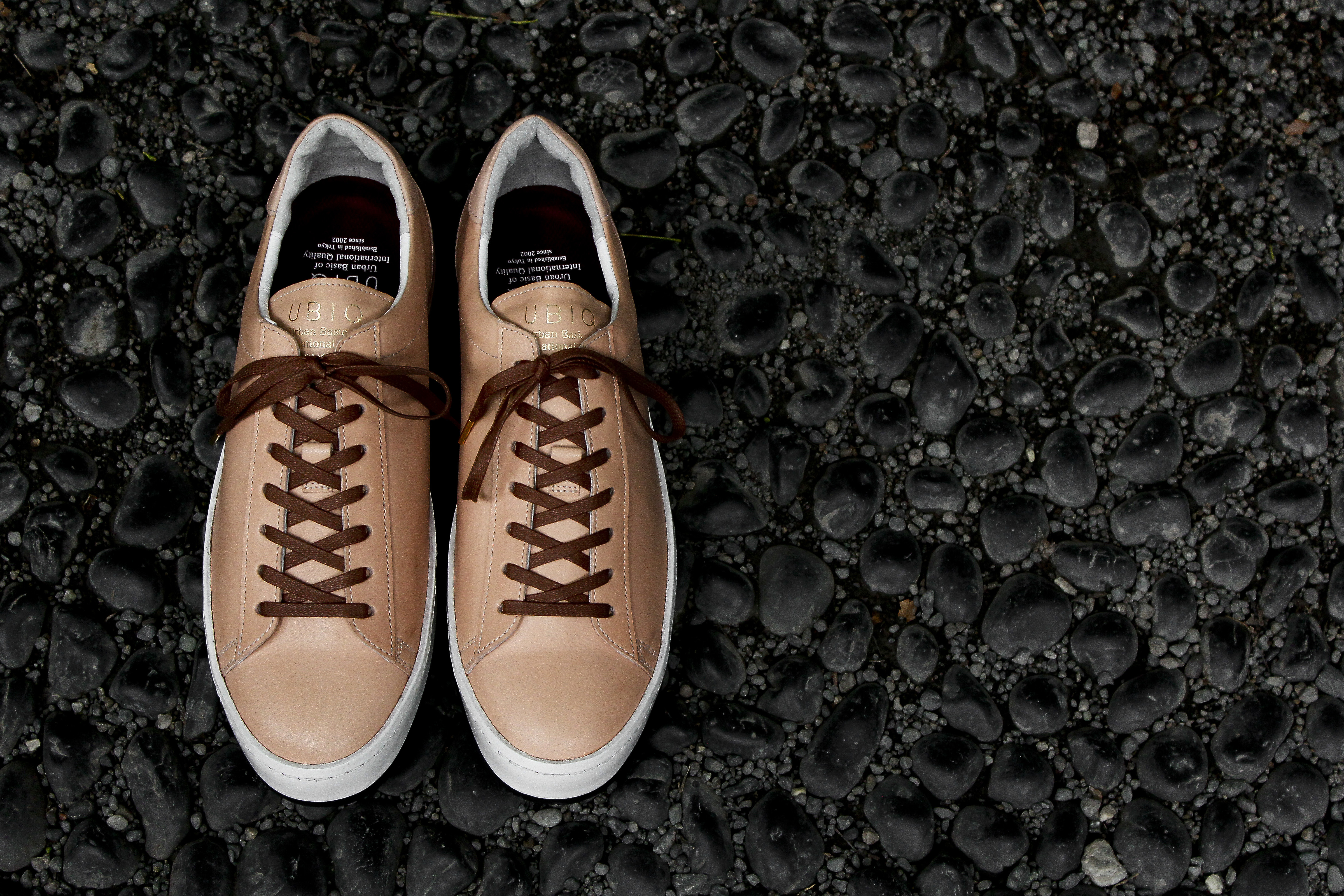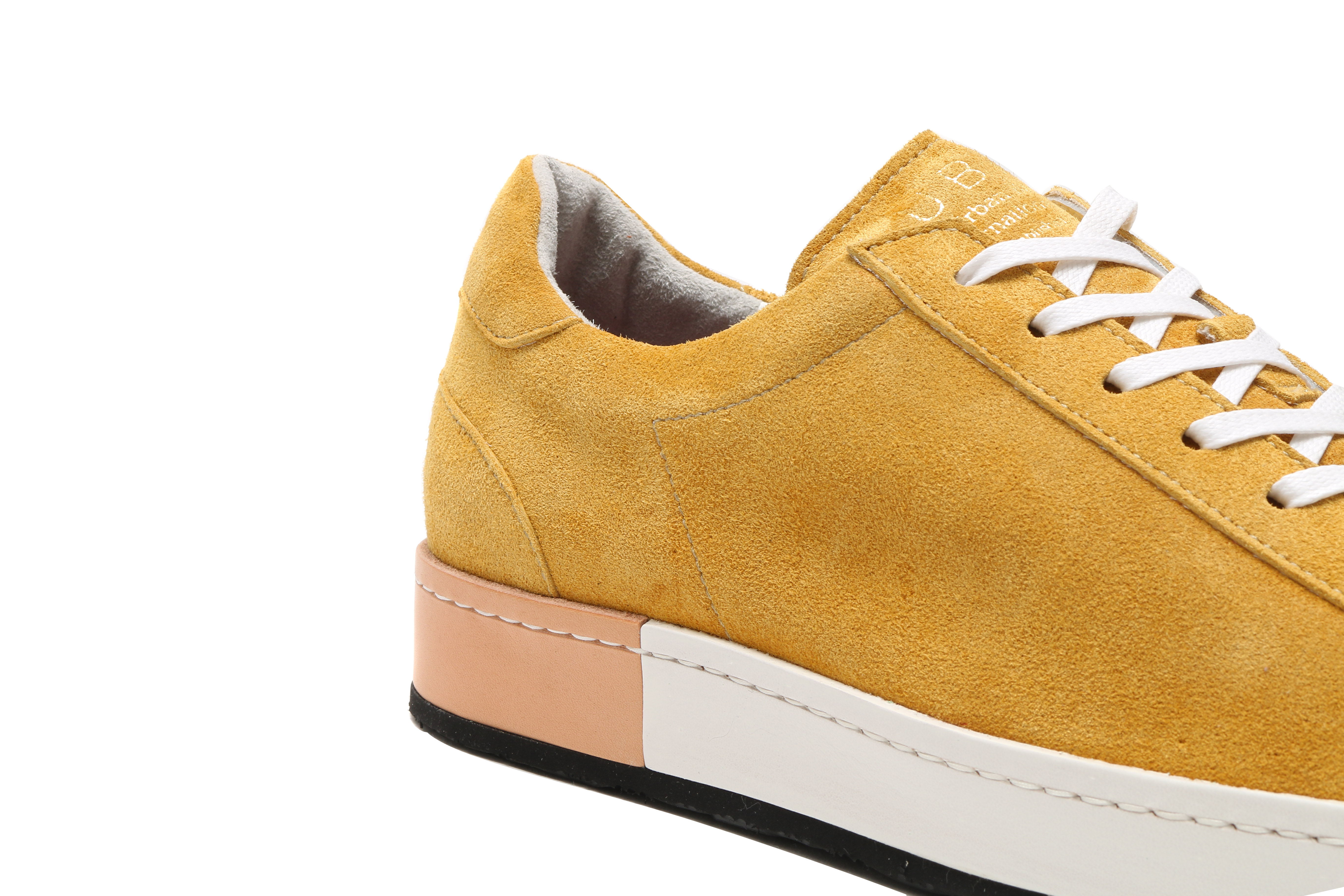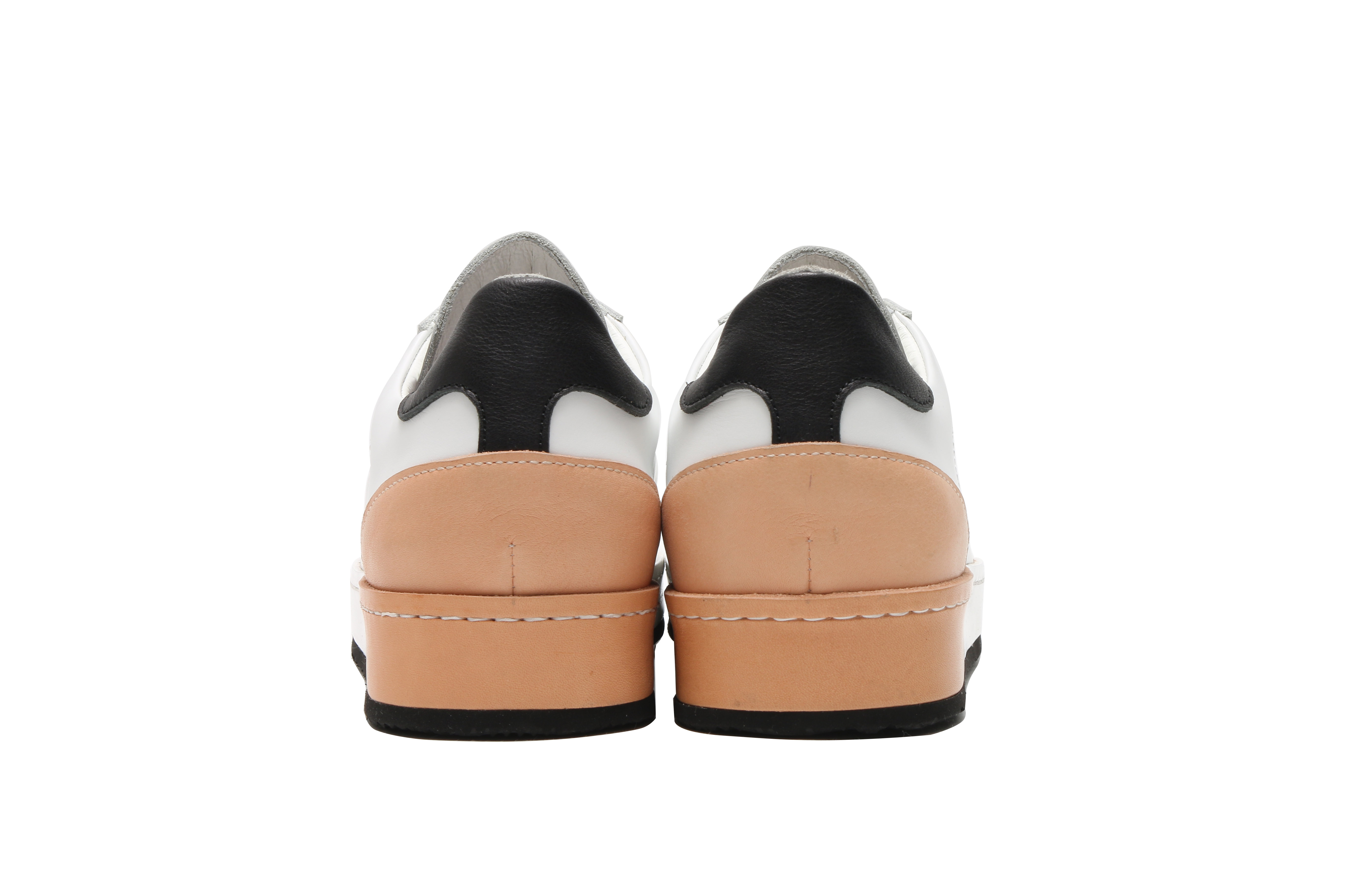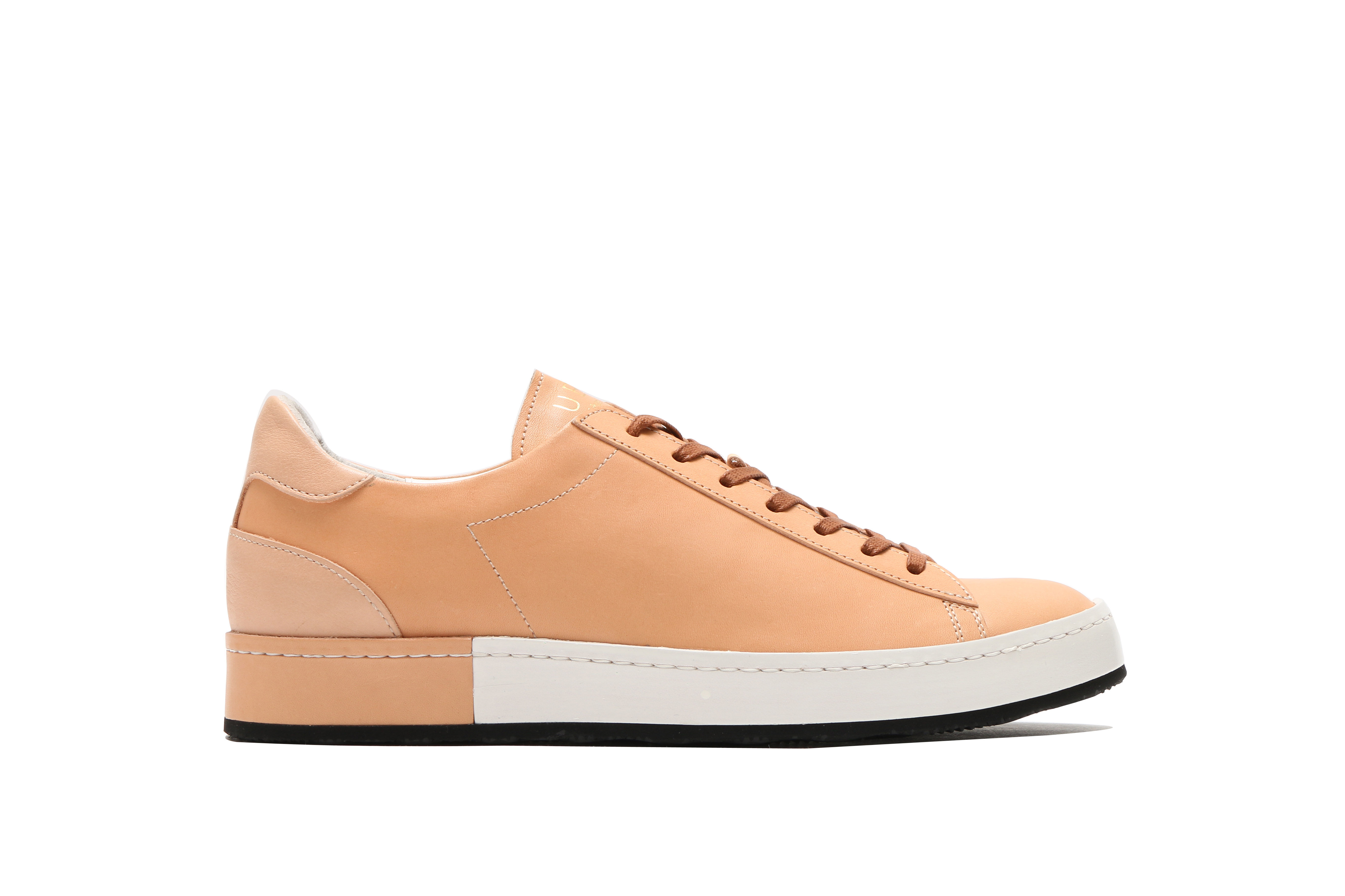 東京下町の職人の技術を用いてひとつひとつ丁寧に仕上げられたシューズは、いわゆるスポーツスニーカーとは一線を画した上品な仕上がり。アウトソールにはビブラムソールを採用、ヒール部分に施されたナチュラルカラーのレザーが軽やかな印象を与える。