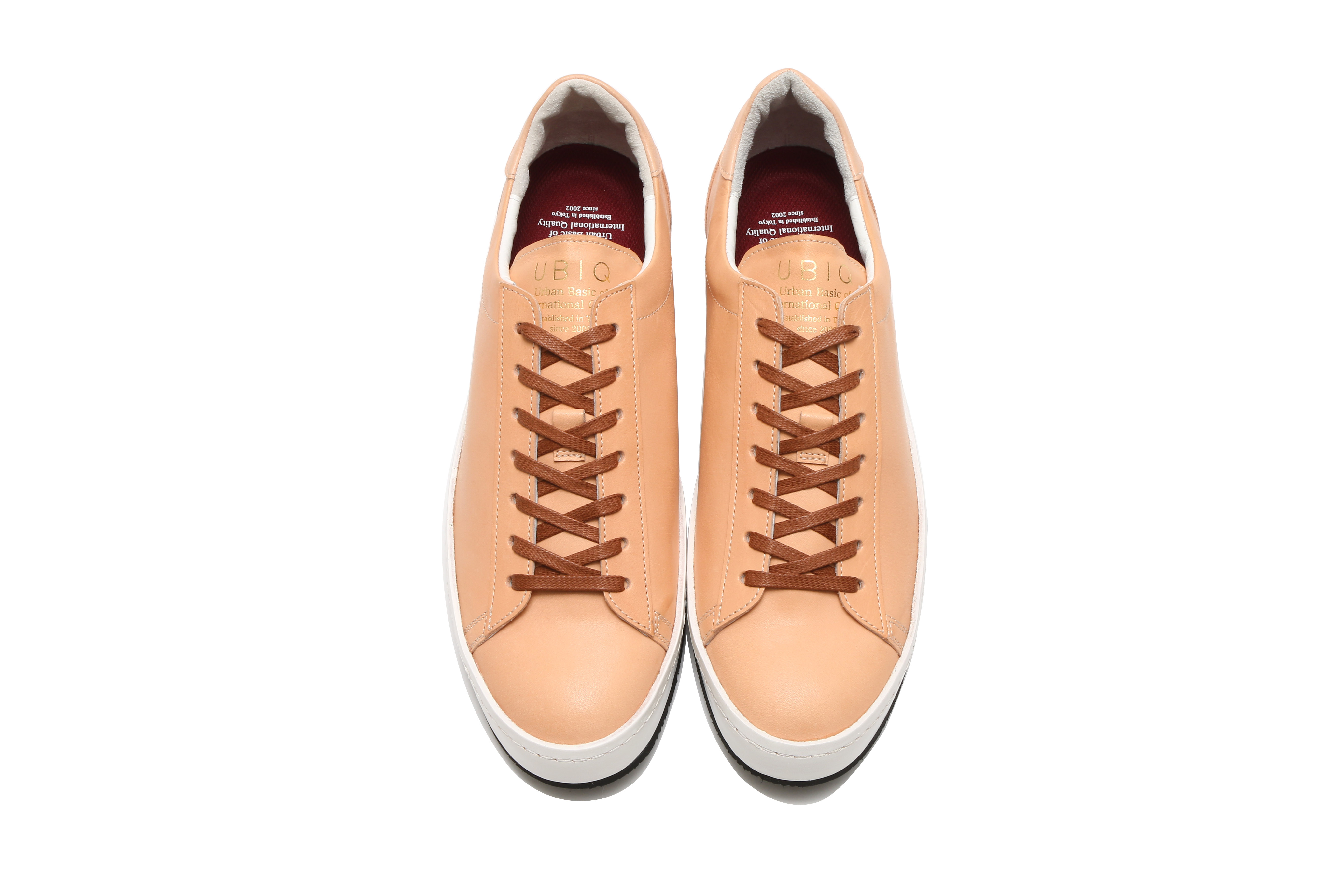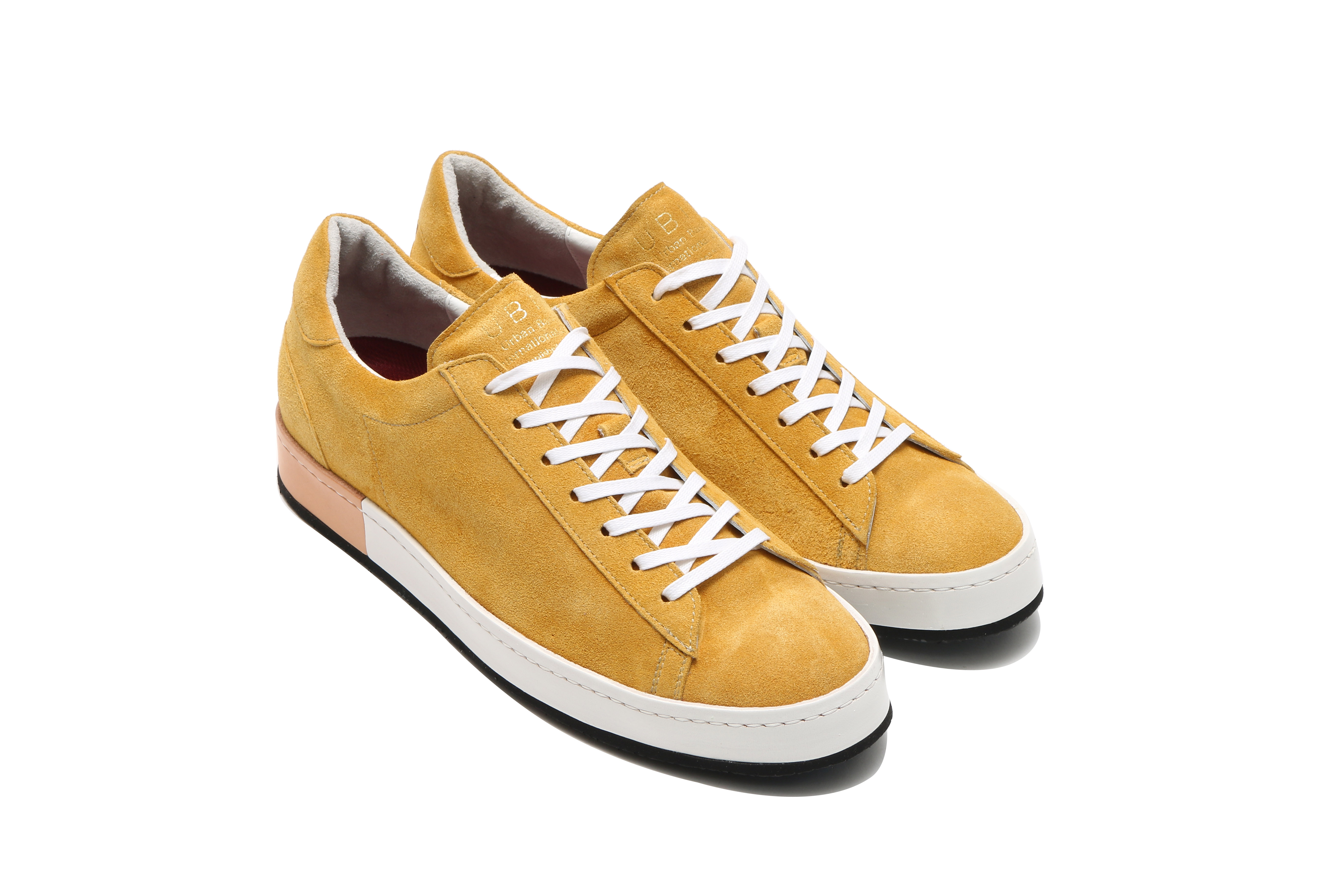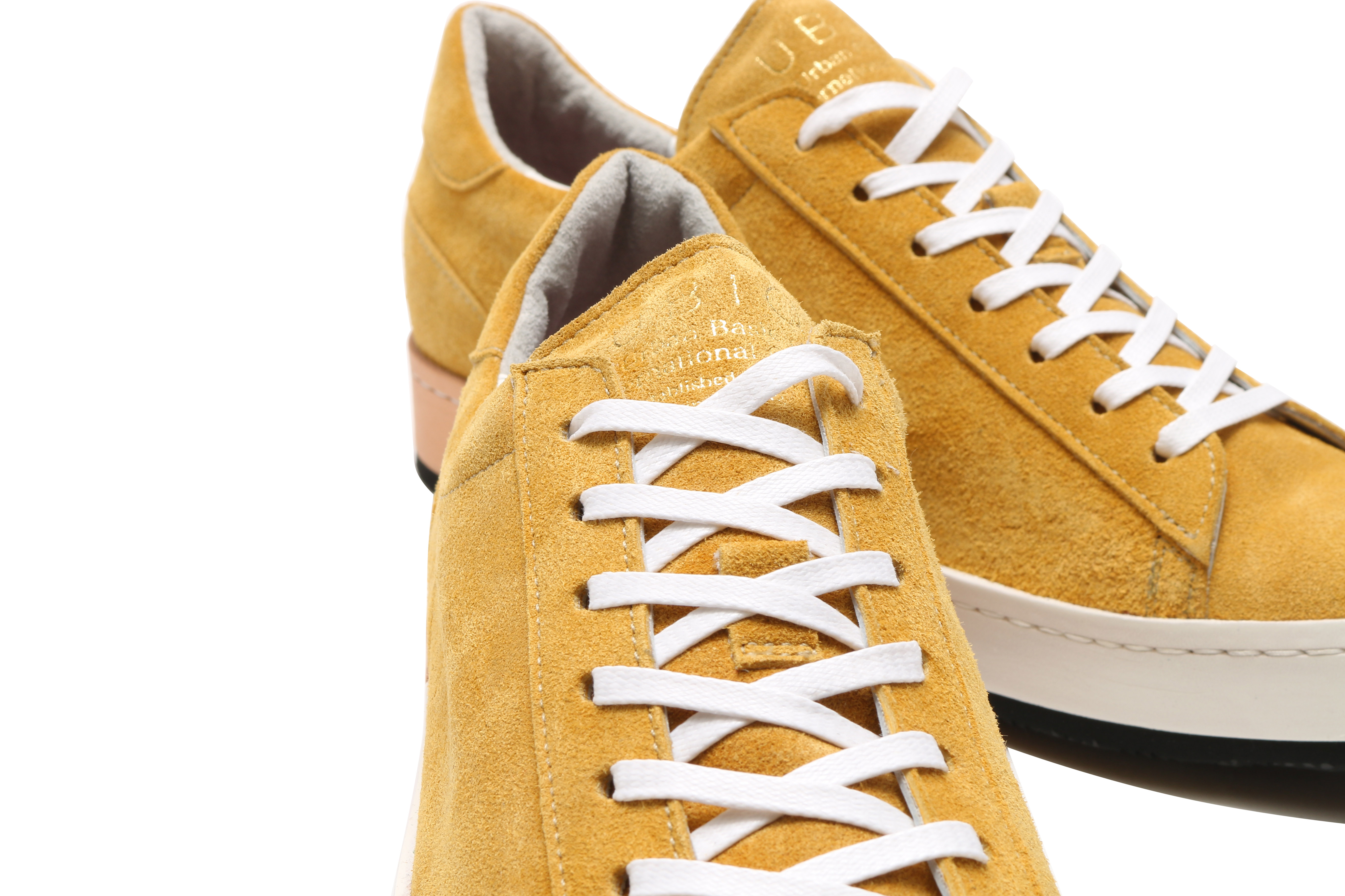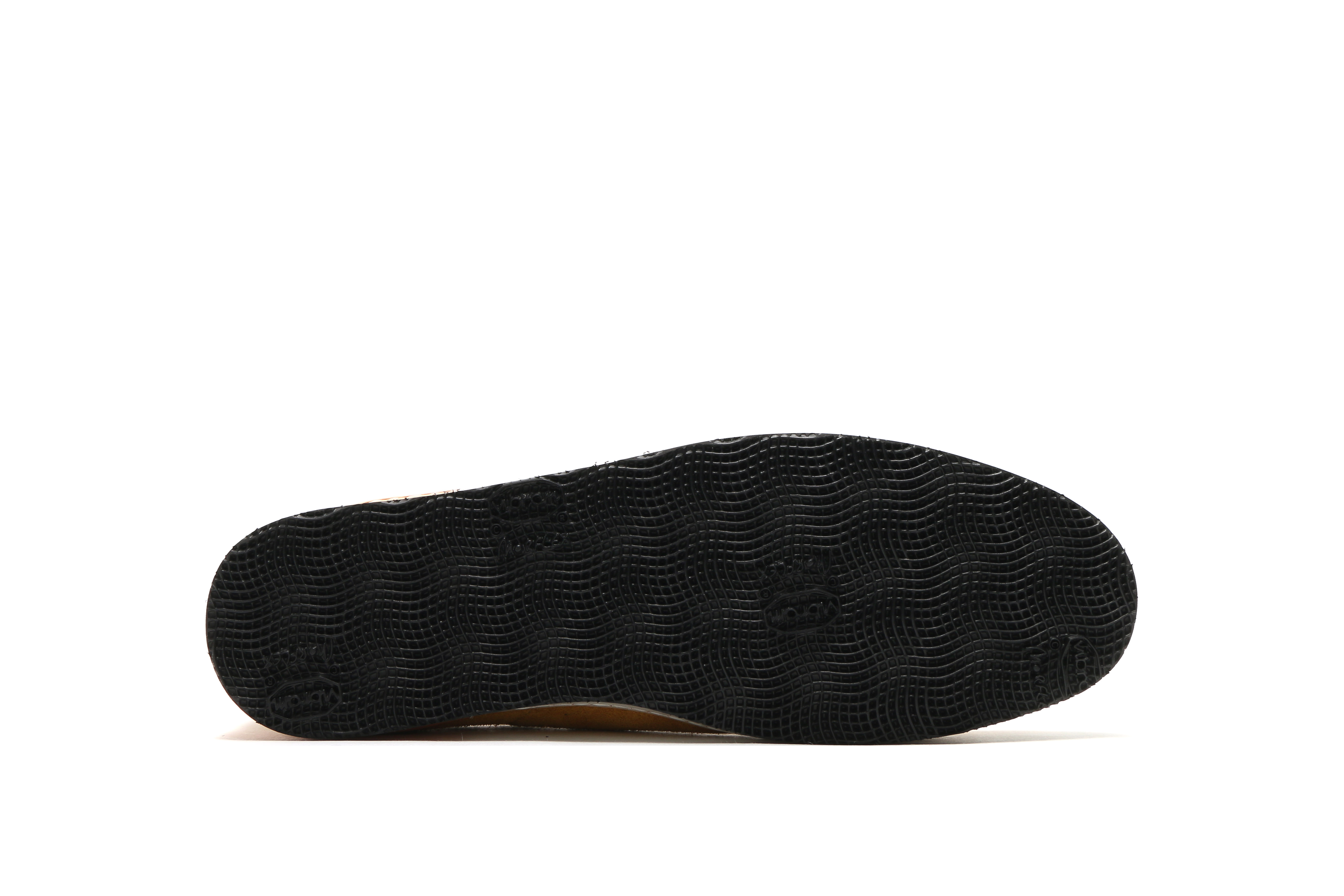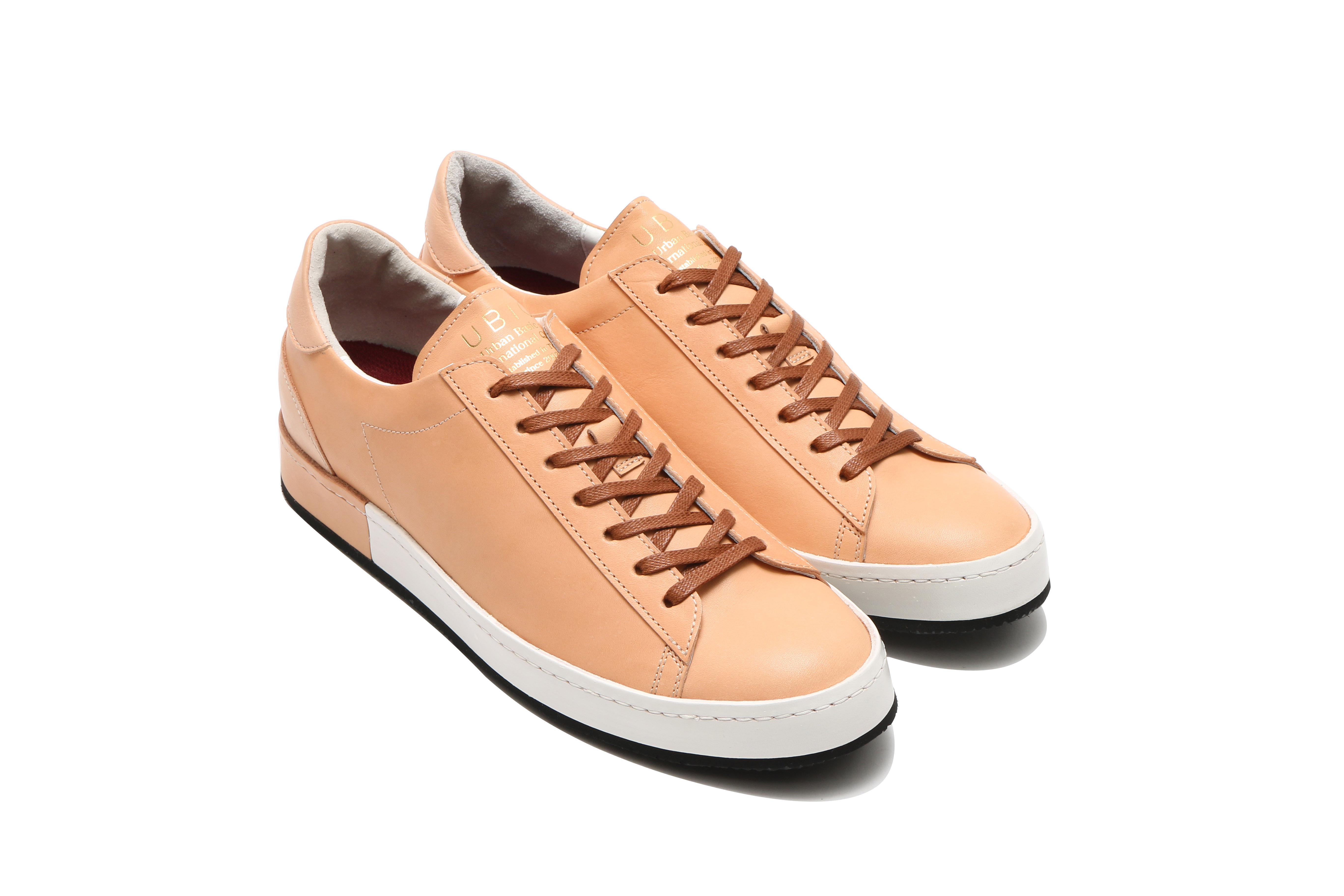 東京下町の職人の技術を用いてひとつひとつ丁寧に仕上げられたシューズは、いわゆるスポーツスニーカーとは一線を画した上品な仕上がり。アウトソールにはビブラムソールを採用、ヒール部分に施されたナチュラルカラーのレザーが軽やかな印象を与える。