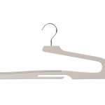 このハンガー、ベルトループが使えるだけではありません。片側面がオープンデザインになっているので、スラックスはセンタープレスを残しながらキレイに保管できます。またニットやコットンなど、伸びやすく畳んで保管することしかできなかった衣類もハンガーに掛けて保管できます。