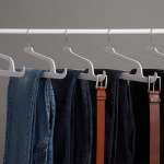 先端についているホックには、ベルトや帽子などの小物類を掛けておけるので、パンツやニットと合わせたコーディネートをひとつのハンガーにまとめておくことも可能。これなら忙しい朝に迷うことなくサッと着替えられそうです。