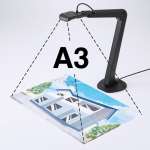 オートフォーカス機能付き800万画素の高画質なカメラを搭載。ヘッドのボタンでフォーカスを自動で調節し、対象物を鮮明に映し出します。なお、最大A3サイズ相当の広範囲まで撮影が可能です。