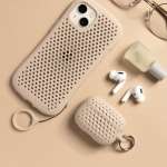 ケースを付けたままでもワイヤレス充電が可能だから、充電のたびに外さなくても大丈夫。メッシュ穴から充電ランプが見えるので、充電状況のチェックもしやすくなっています。