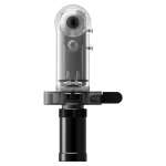 こうした空気調整機能を持つ装置をカメラにも取り付けることで、カメラを水中の一定の場所に浮遊できるようにしたのが本製品。カメラを浮遊状態で固定できるのでピント合わせや画角調整もお手のもの。例えば、撮影者自身が水中を泳いでいる姿を第三者が撮影したかのようなアングルで撮影ができます。