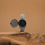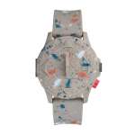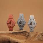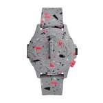 44mm径のステンレススティールケースを覆うグラウンドシリコン製のケースジャケットとストラップは、テラゾー(人造大理石)からインスピレーションを得た独特なデザインです。