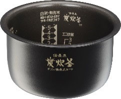 そして、熱度伝道性の高い5層構造の金属釜をダブル備長炭でコート。しかも、新・熱密封かまど構造により、本体と内釜の隙間をなくしたので、熱を逃さず効率よく加熱し、本炭釜の強火を持続して連続沸騰。大容量のカートリッジでふきこぼさず、しかもうまみを逃さず、高火力でふっくらと炊き上げる。