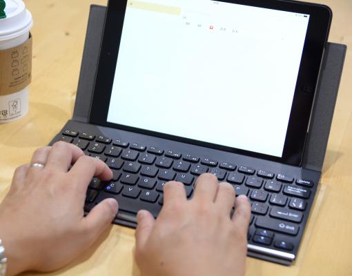 接続は、Bluetooth 3.0にて、iOS、Android端末、Windowsタブレットなどで使用可能。バッテリーの連続使用時間は約90時間と、頻繁に使っても2、3週間は持ちそうな長寿命で、外回りの多い仕事でも心強い。連続待受日数も約90日と、バッテリー関係では煩わされることはなさそうだ。microUSBケーブルにて約4時間でフル充電となる。