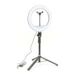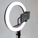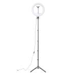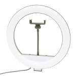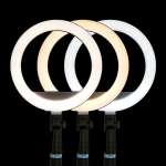 LEDライトは12インチサイズのリング仕様(外径305×内径230×厚さ30mm)で、重さは375g。背面側下部の操作パネルで、色温度は3段階(2700~7000K)、明るさは11段階で変更・調節ができます。