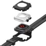 ダイビングウォッチ用バンドがイメージされたデザインで、水が溜まらない“アクアフローシステム”を採用。Apple Watch本体をクリアケースに収め、さらにレイヤー構造のカバーを被せてバンドに固定する仕様です。