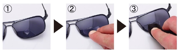 使い方はとても簡単。まずはサングラスのレンズをキレイに拭く。そしてレンズに水を垂らし、「ハイドロタック」をのせる。位置を調整したら上から軽く押して、余分な水をティッシュで拭き取る。あとは10分ほど自然乾燥させれば完成です。これで、自分のサングラスに老眼鏡機能が追加されました。