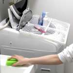 洗面所の隣や脱衣所などに設置されていることが多い洗濯機。身支度に必須なドライヤーや化粧品、手洗い、洗顔の際に外したメガネや時計、マスクなどの一時置き場としてなど、使い方は自由自在。物をサッとおけるちょっとしたスペースが欲しかった…という人にうってつけです。
