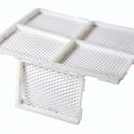 5枚入りトレイの1枚あたりの大きさは、W27.2×D21×H12cm。トレイを4枚組み合わせた載置可能サイズは、W53×D40×H2cmで、接続パーツが2セット付属。