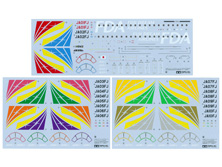 今回発売された「1/100 エアークラフトモデル フジドリームエアラインズ エンブラエル175」は、この10色をすべて再現できるよう、カラフルな大判デカールを付属。さらに、各号機の塗装に使用する塗料「タミヤカラー」の組み合わせも設定されている。