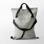 この特別な生地で仕立てた容量20Lの「LWP001:Ultimatelight 20L Backpack Tote」は、しなやかで強いストラップと軽く丈夫なアルミニウムの金具を合わせ、本体の重さ約135gという驚異的な軽さを実現。この軽さと薄さでありながら、約8㎏の荷物を運べるタフさを備えています。