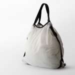 手のひらサイズに小さくたためるパッカブル仕様で、折りたたむときにも音がしないほどのしなやかさ。バッグに常備して買い物の際のマイバッグや、旅行時に荷物が増えた際のサブバッグとして使うも良し、メインのバッグとして使うも良し、のマルチなバッグです。カラーはホワイト、ブルーグレー、ブラックの3色。