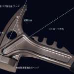 サイズは32×95×250mmで、 重量は約500g。本体部分の素材には鋳造ステンレス(SUS420J2、熱硬化処理加工済み)を使用。またヘッドの重心を前方においたスラントカットヘッドによって、打撃の安定性を確保しています。