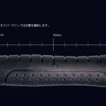 一方グリップ部分にはエラストマー樹脂を使用することで、グローブをはめたままでも安定した握り心地を提供します。等間隔で打たれたスケールグリップは、簡易メジャーとしての使用シーンを意識して施されたものです。