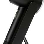 デザインはシンプルで色もオールブラック。ハンズフリーで使用でき、同時にヘアケアもできるドライヤーで、身だしなみの時短化ってアリかも。