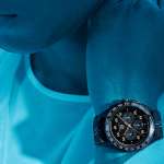 まず目を惹くのは、ウォッチの外装にあしらわれたブルー×ブラックのスポーティなカラーリングですが、これはもちろんタイカンを象徴するボディカラー“フローズンブルー”にインスパイアされたもの。