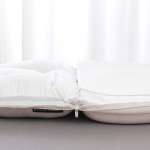 寝心地を向上させる詰め物は、量の調整はもちろん、詰め物の素材もそれぞれのポケットで異なり、左右には太い繊維の粒状パフを使用、横向きの寝姿勢をしっかり支え安定感を生み出します。