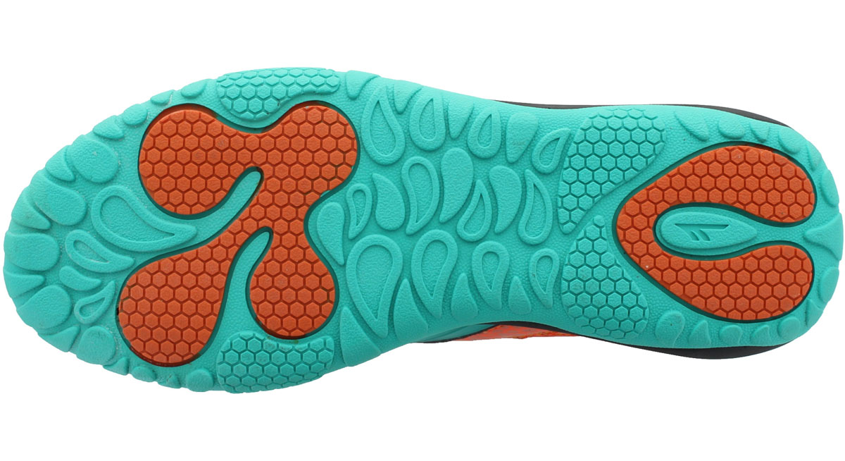 注目すべきは、アウトソールに使われた「GAMAHEX(ガマへクス)」。約24万通りの組み合わせの中から、独自に開発した防滑ラバーだ。カエルの指先の皮膚組織にヒントを得てデザインされており、一般的なゴムと比べ、乾いた路面と濡れた路面での防滑性の差が小さいのが特徴。