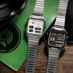 「BEAMS モデル」は、ブラックが基調の「Ref.JG2129-61H」(3万5200円)と、シルバーがメインの「Ref.JG2128-63E」(3万4100円)の2本をラインナップ。別体ベゼルの構造を活かし、それぞれが対となる逆配色で、ケースカラーと透け感のある文字盤がアクセントカラーになっています。