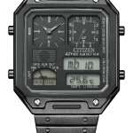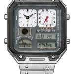 本製品は、世界で初めて温度計測機能を搭載したコンビネーションウオッチ「サーモセンサー」シリーズの中でも、別体ベゼルが印象的な1982年発売のモデルをもとに復刻したもの。当時のオリジナルデザインを現代にマッチするようアレンジしています。ビス止めされた別体ベゼルというエッジの効いた立体的なデザインや、バンドの飾りネジなども再現しており、独特のレトロフューチャー感を漂わせています。