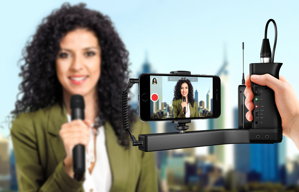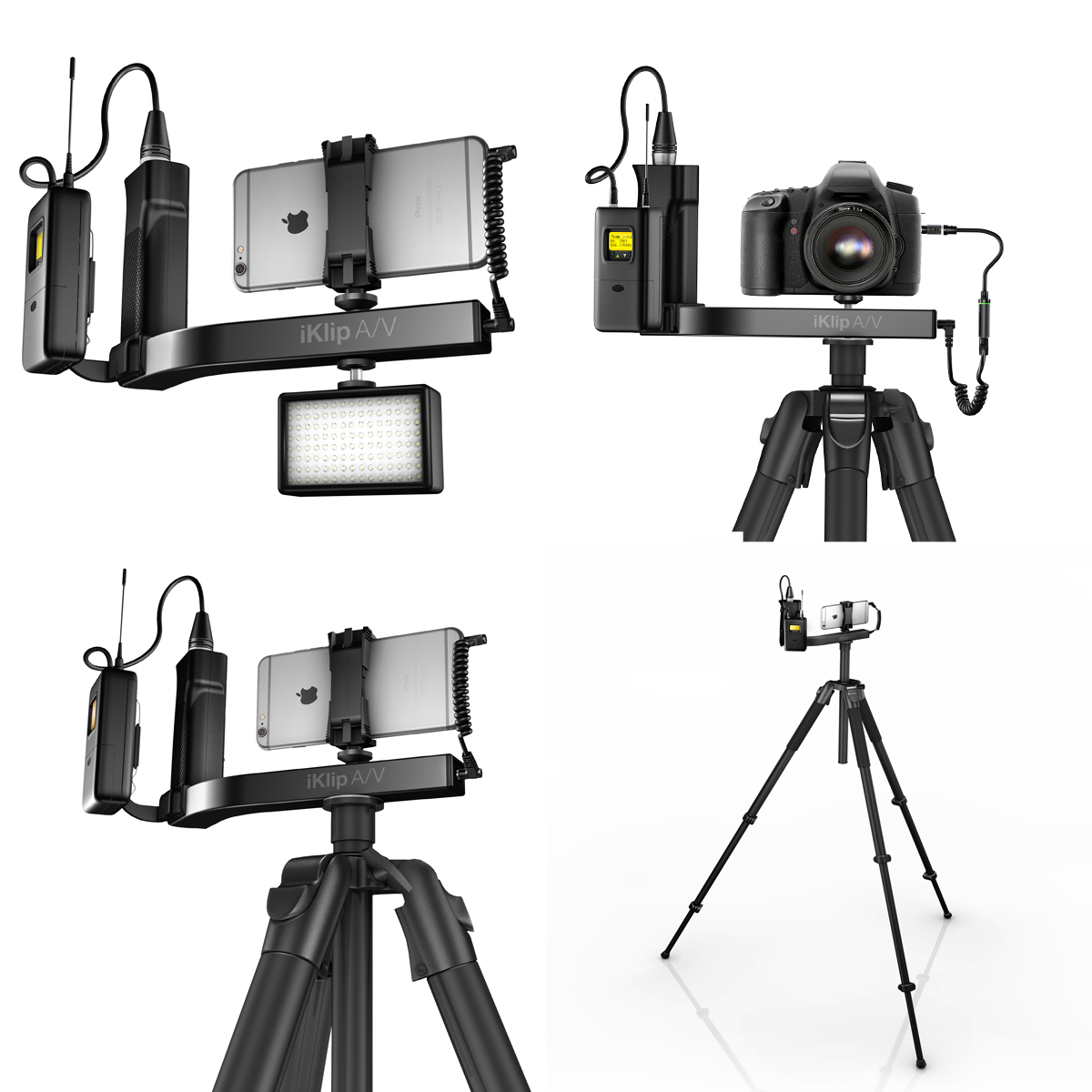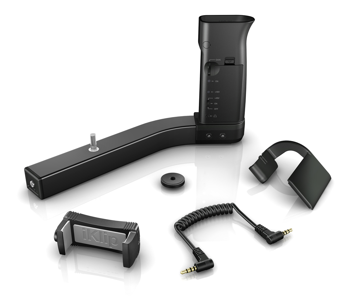 「iKlip A/V」はマイクプリアンプを内蔵したグリップです。スマホをグリップに固定してお気に入りのマイクを組み合わせれば、動画にプロ並みの音声を残せるスグレモノなんです。