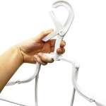 アームの付け根がゆるやかにしなる構造になっていて、首まわりからもハンガーが入れやすいようになっています。前開きじゃないプルオーバータイプでも、形を崩さずやさしく干せます。
