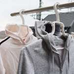 いずれも日本製でしっかりした作り。シンプルな白で、清潔感もあっていいですね。もちろんパーカーだけでなく、フード付きのプルオーバーやアウトドアで活躍するフード付きジャケットを干すのにも便利です。