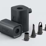 ノズルは、浮き輪やバランスボールを膨らませる“細口ノズル”、エアマットやエアソファに最適な“円形ノズル”、大型エアベッドやインフレータブルカヤックに使える“ミドルノズル”、収納袋や圧縮袋にフィットする“ゴムノズル”の4種類が付属し、さまざまな物に対して使えます。
