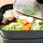 ひとり暮らしの食卓はもちろん、3~4人のホームパーティーまで対応できる便利な「コンパクトグリル鍋」は、鍋と焼肉プレートがセットになった2WAY仕様。