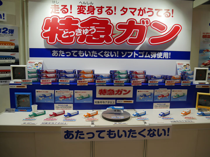 電動ガンがズラリと並ぶ東京マルイで気になるものを発見。電車がガンに変形し、専用の柔らかいBB弾を撃ち出すというもの。