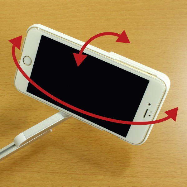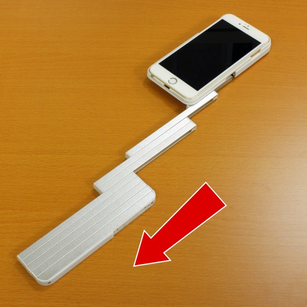 ストッパーを外し、iPhoneを持ち上げれば、あとはケースを回して伸ばしていくだけ。