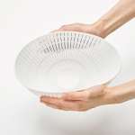 樹脂素材なので、陶器やステンレスのボウルより熱くなりにくく、扱いやすいのもうれしいですね。また浅型のザルボウルはフランジ(出っ張ったツバの部分)を持つことができるので持ち運びも便利です。