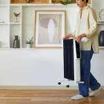 サイズはW31×D49×H69cm(脚を閉じた状態)で、重さはたったの約4.8kg。キャスター付きで、使いたいときに使いたい場所へ手軽に移動させられます。カラーはホワイトとブラックの2色です。