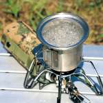 素材にはサビにくい0.4mm厚の304ステンレスを使っていて、お湯を沸かす際はガスバーナーなどの直火で温めることが可能!