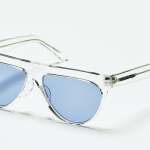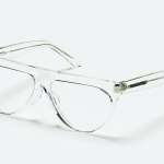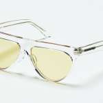 また、フレームは美しい光沢と優れた耐衝撃性を備えたアセテートが用いられ、無色透明かつフラットトップの直線的なラインに、顔半分を覆うような大きめのレンズと組み合わせたユニークなシェイプが特長。