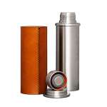容量は約575ml。本体には、耐食性が高く匂い移りが少ない高品質の18-8ステンレスを使用し、保温約8時間、保冷約24時間と優れた機能性を誇ります。スリムな印象の本体は約75×250mm、口径約40mmと飲み口が小さめな作りで、直線的が際立つスタイリッシュなデザインも北欧ならではです。