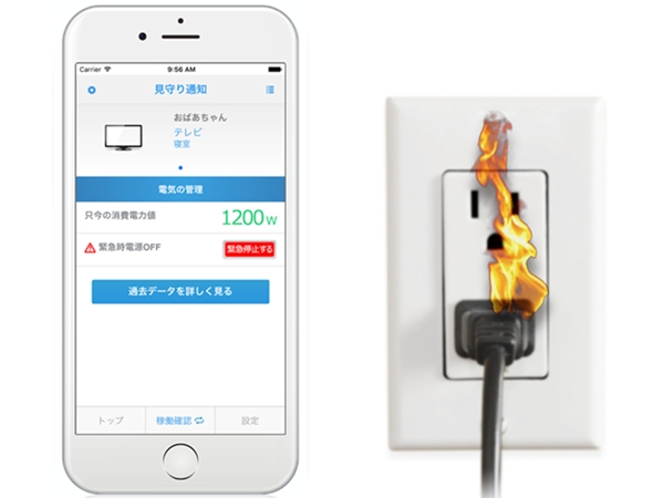 さらに無線中継機能を内蔵しており、Webカメラや人感センサー、スマートロックなど、他のデバイスにも繋げ、見守り範囲を広げることも可能。また、経年劣化した家電など、異常電力を検知したとき内蔵ヒューズが電気を遮断してくれるなど、電気事故から守る機能も搭載しています。
